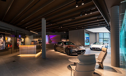 マセラティ 目黒は、2011年1月に正規ディーラーの1号店としてスタート。2024年7月には新グローバルコンセプト採用日本1号店として、リニューアルオープン致しました。ディスプレイや内装などのルックスのみではなく、お客様の「体験」でも新しさを提供いたします。個室のコンサルテーションルームで、大型スクリーンに映し出される最先端の MXE3D デジタルコンフィギュレーターを体験や、試乗や車両引き渡しの思い出を作ることができる「ローンチパッド」の没入体験で味わい、マセラティ車を受け取るドラマチックな瞬間をご家族やご友人と共有することができます。