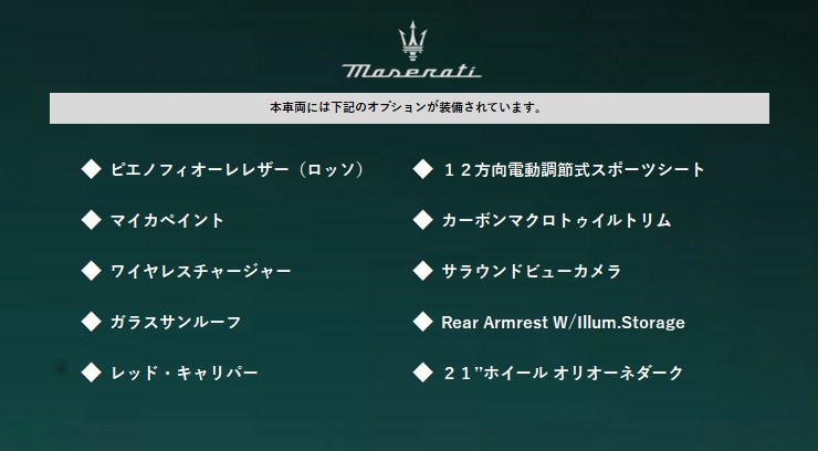 | 外装カラー | NERO ASSOLUTO |